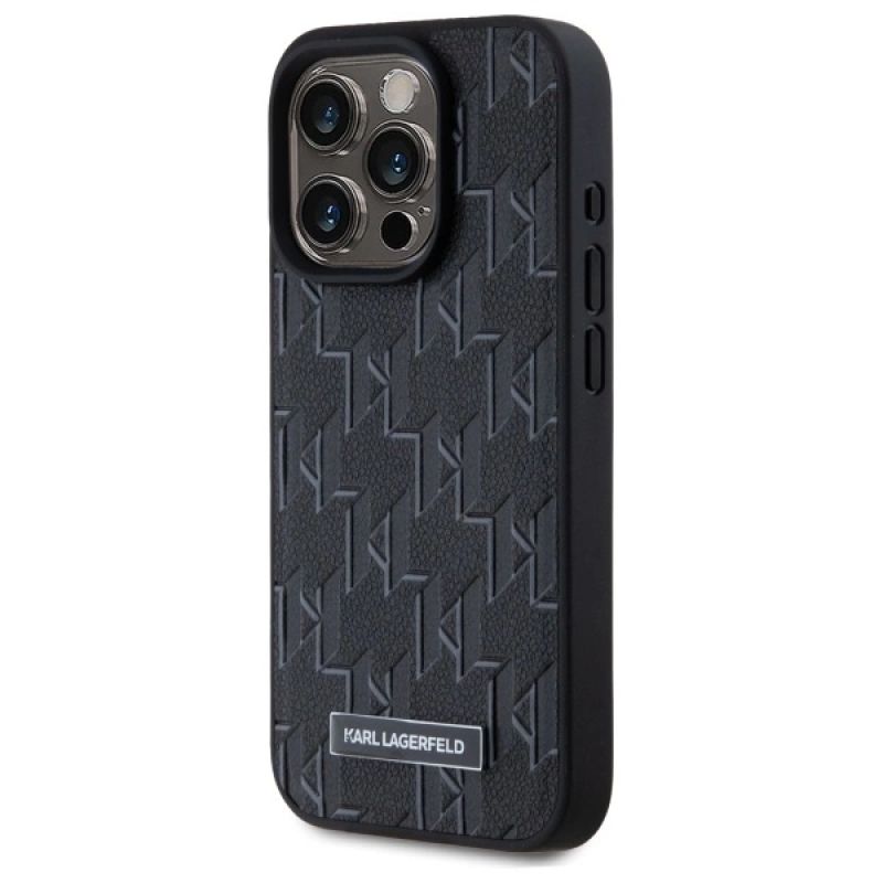 Karl Lagerfeld MagSafe-Hülle aus Leder mit Monogramm und Metalllogo für iPhone 15 Pro – Schwarz
