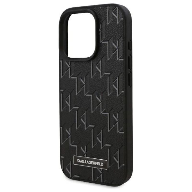 Karl Lagerfeld MagSafe-Hülle aus Leder mit Monogramm und Metalllogo für iPhone 16 Pro – Schwarz