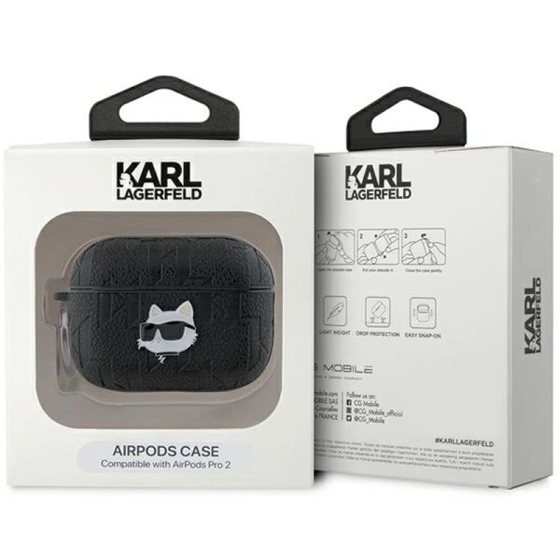 Karl Lagerfeld Monogram Choupette Head Case für AirPods Pro 2 – Schwarz