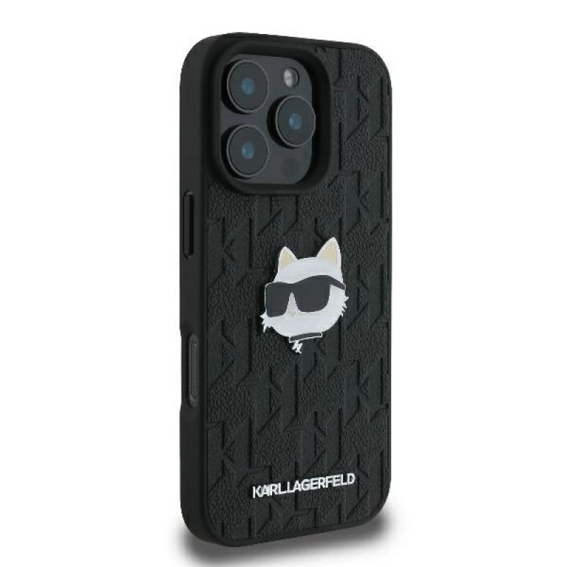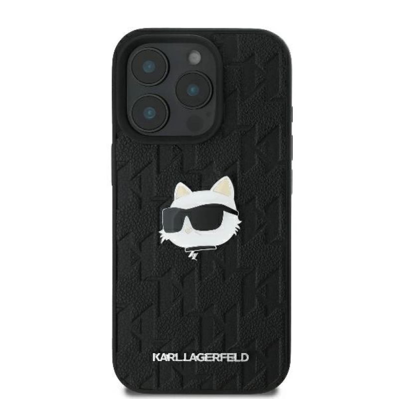 Karl Lagerfeld Monogram Choupette Head Pin Hülle für iPhone 16 Pro – Schwarz