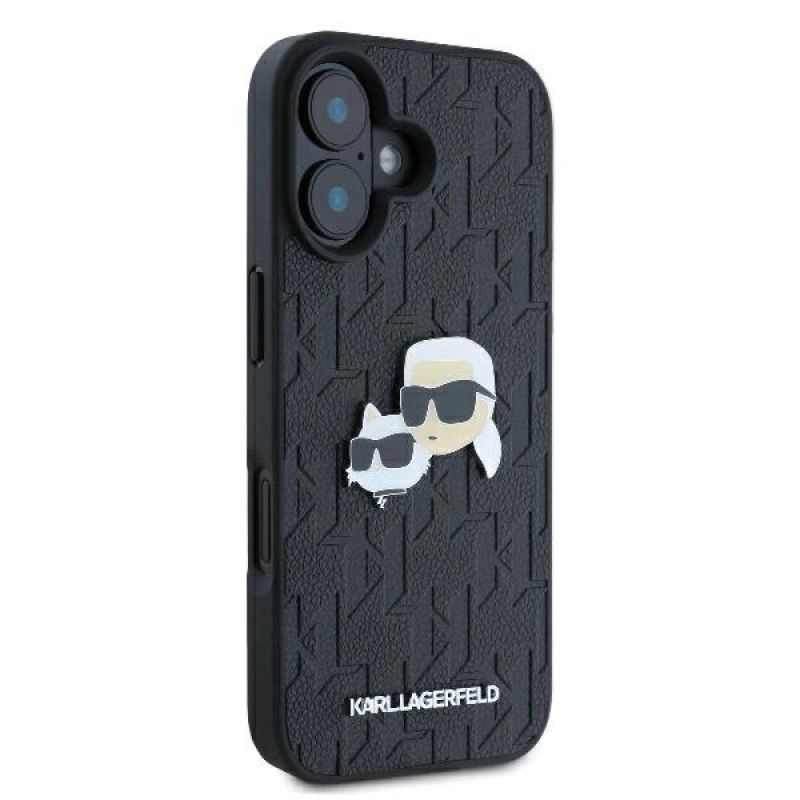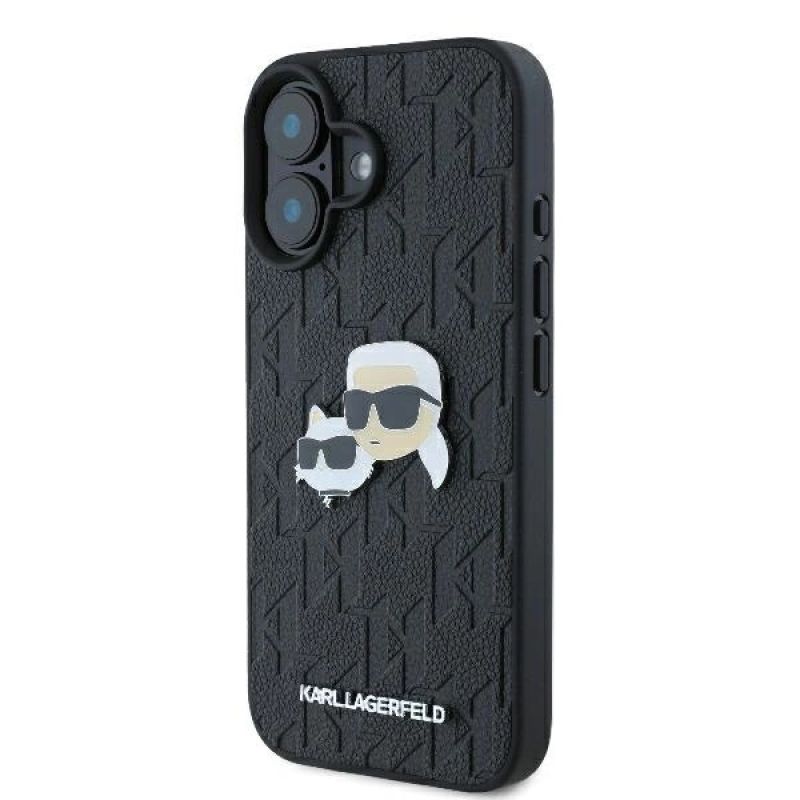 Karl Lagerfeld Monogram Karl & Choupette Head Pin Hülle für iPhone 16 Plus – Schwarz