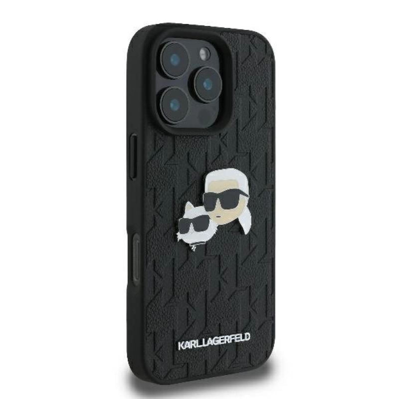 Karl Lagerfeld Monogram Karl & Choupette Head Pin Hülle für iPhone 16 Pro – Schwarz