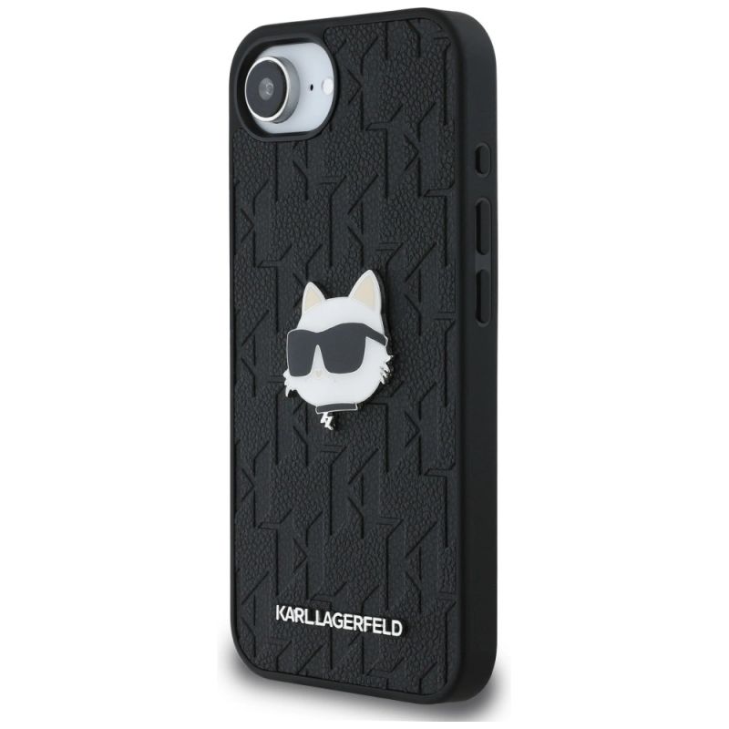 Karl Lagerfeld Monogramm Choupette Kopf Pin iPhone 16e Hülle - Schwarz