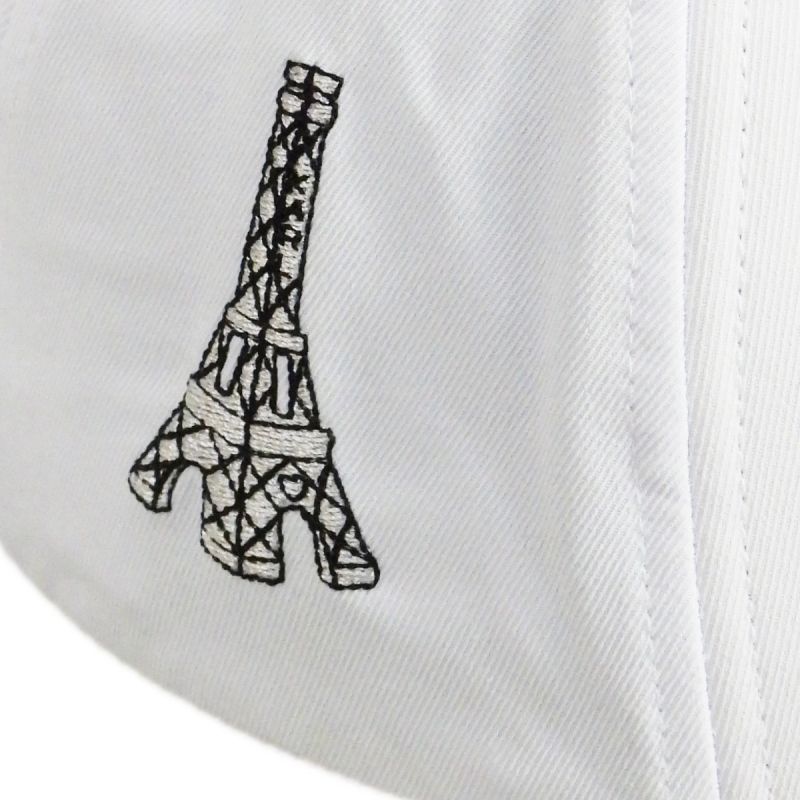Die Kappe ist in einem eleganten Weiß gehalten, was dem Ganzen einen modernen, minimalistischen Charakter verleiht.