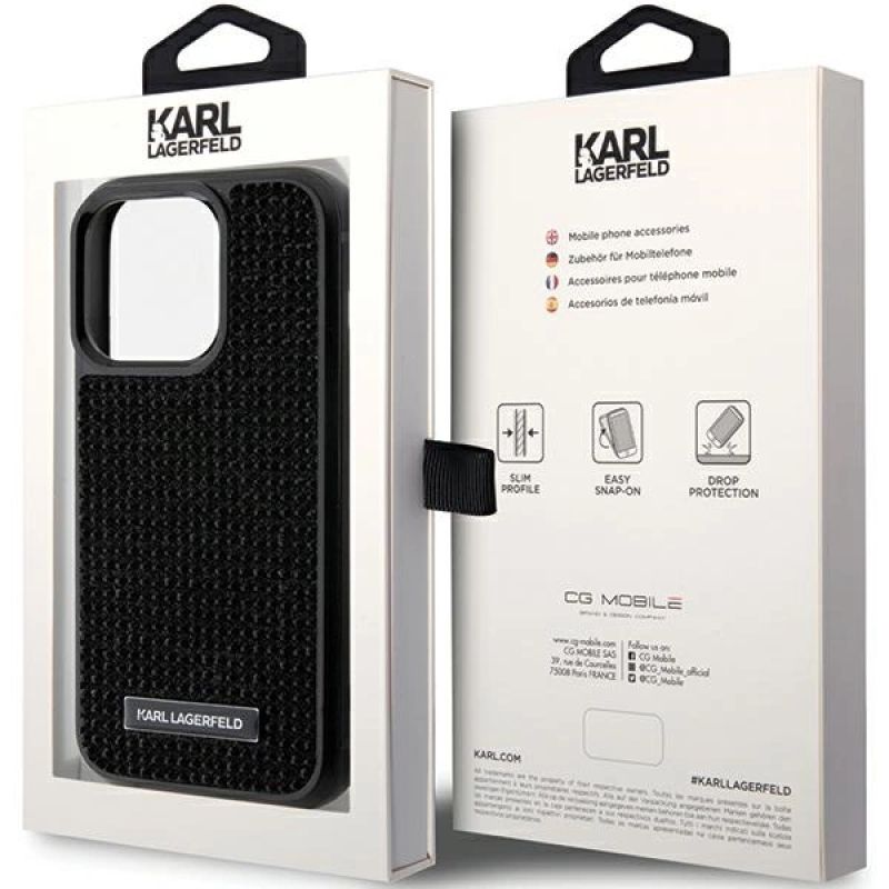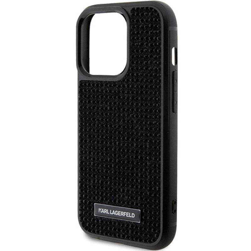 Karl Lagerfeld Rhinestone Logo Metal Plate Hülle für iPhone 15 Pro – Schwarz