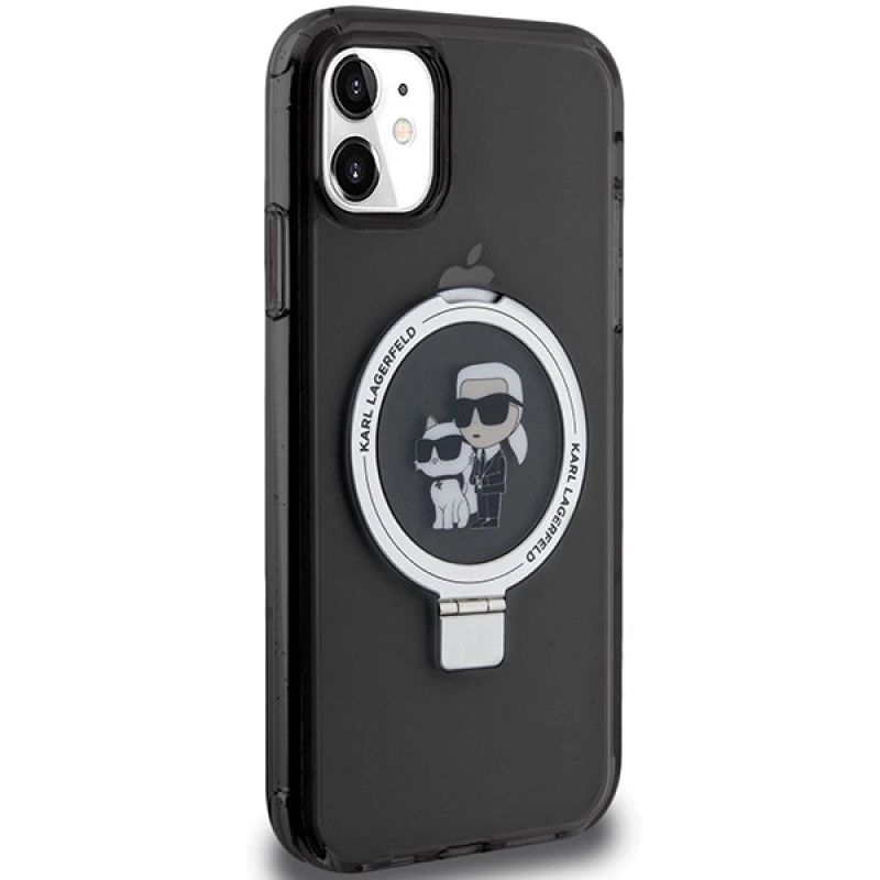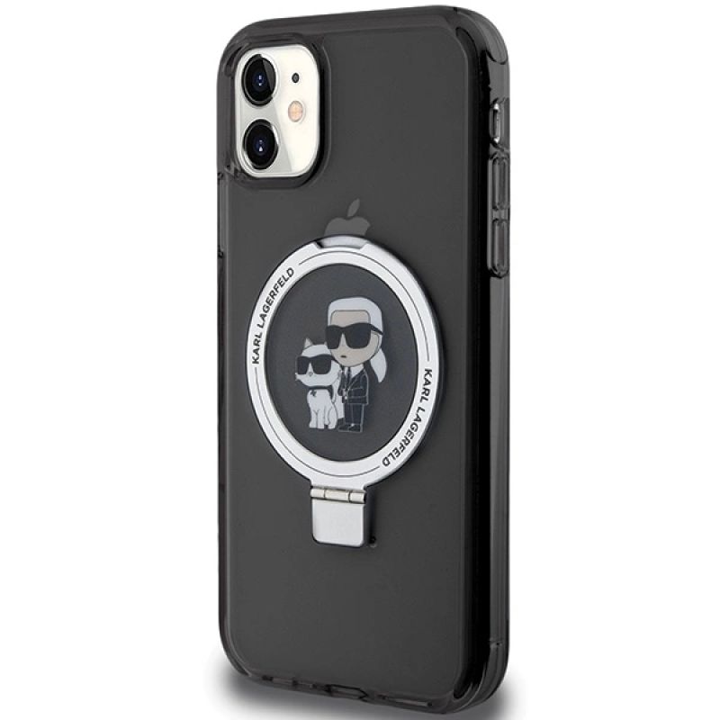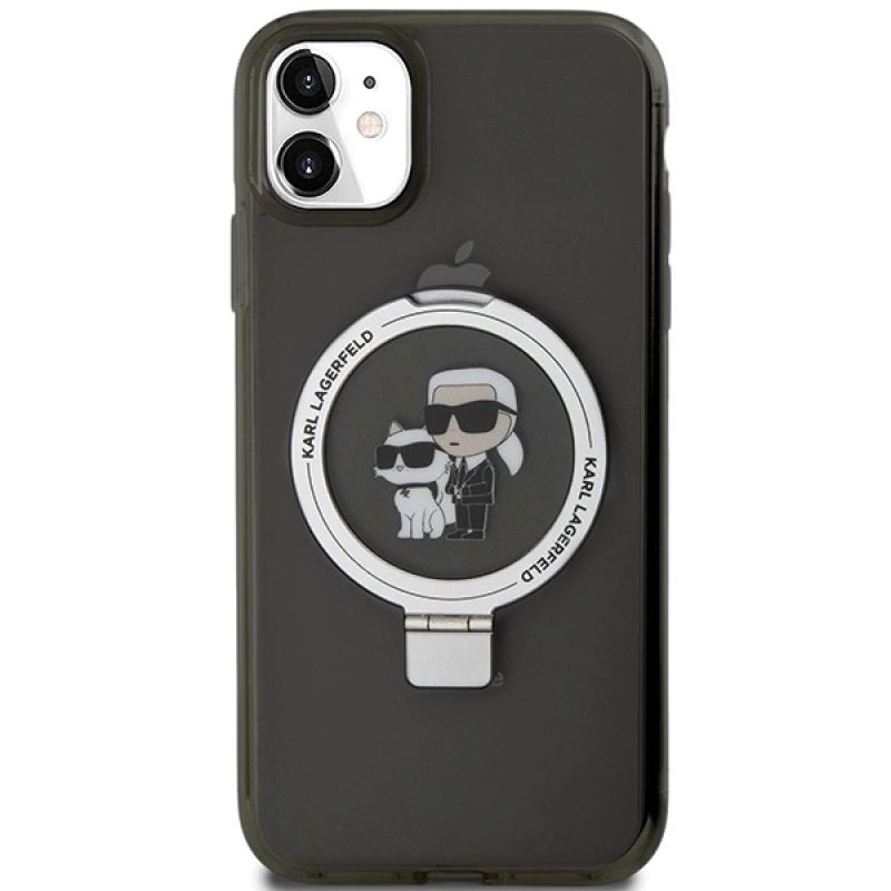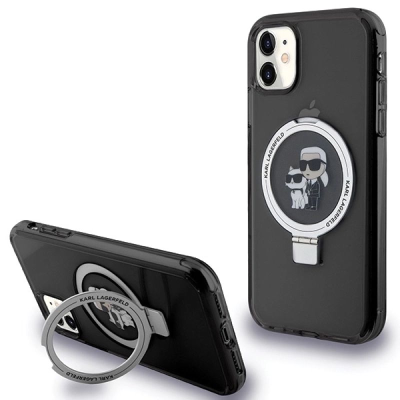 Karl Lagerfeld Ring Stand Karl&Choupette MagSafe Hülle für iPhone 11 / Xr – Schwarz