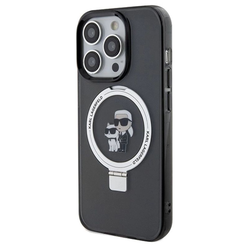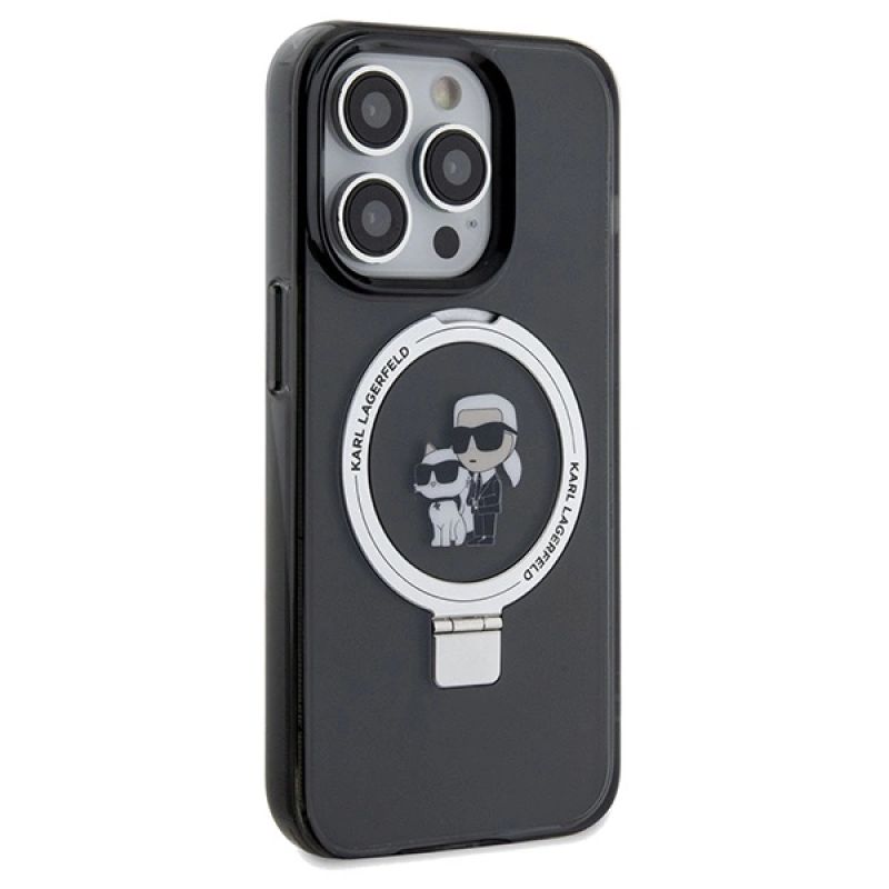 Karl Lagerfeld Ring Stand Karl&Choupette MagSafe Hülle für iPhone 13 Pro Max – Schwarz