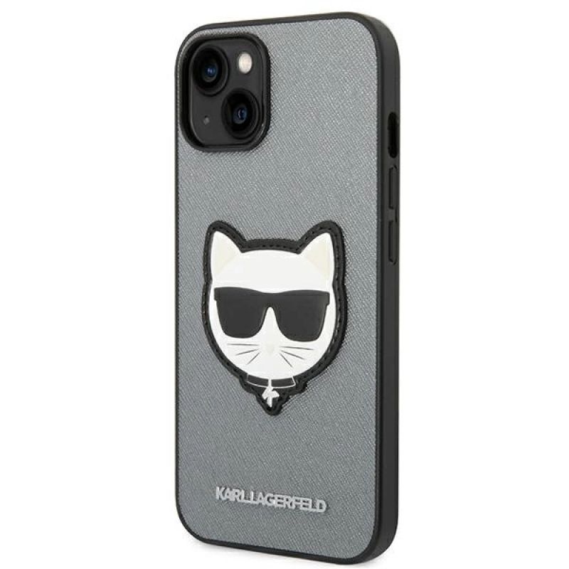 Karl Lagerfeld Saffiano Choupette Head Patch Hülle für iPhone 14 Plus - Silber