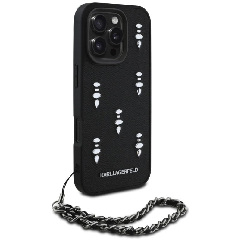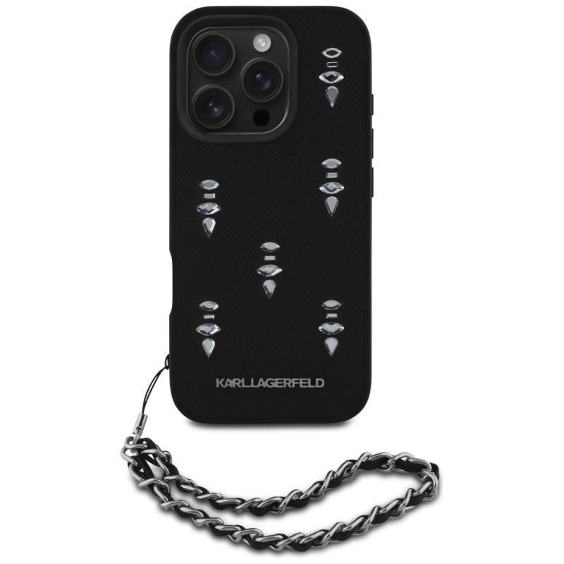 Karl Lagerfeld Saffiano Crystals w/Chain iPhone 16 Pro Case - Schwarz