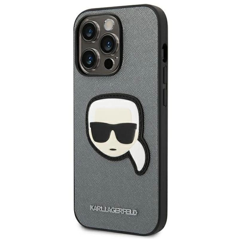 Karl Lagerfeld Saffiano Karl's Head Patch Hülle für iPhone 14 Pro Max - Silber