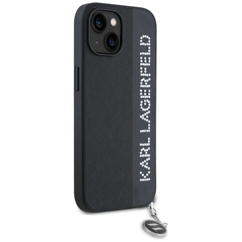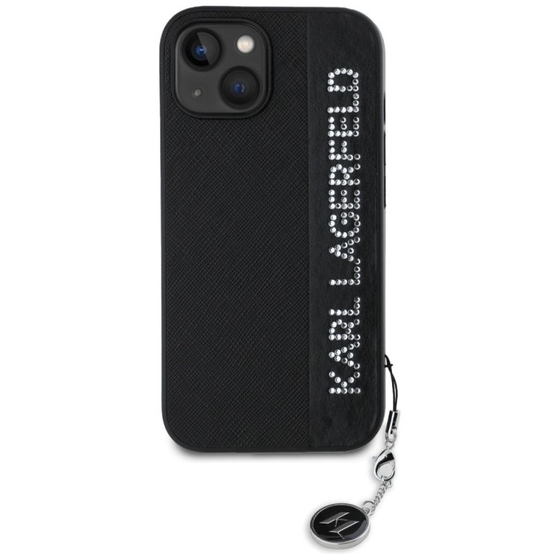 Karl Lagerfeld Saffiano Rhinestones & Charm Hülle für iPhone 15 / 14 / 13 – Schwarz