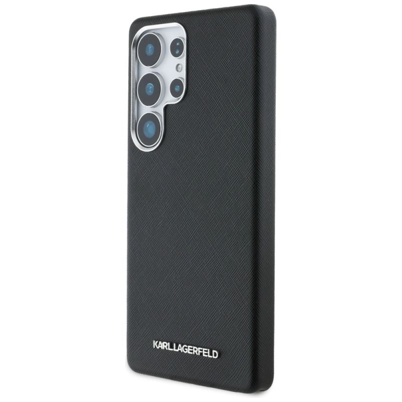 Karl Lagerfeld Saffiano Vollumwickelte MagSafe Hülle mit länglichem Metalllogo für Samsung Galaxy S25 Ultra - Schwarz