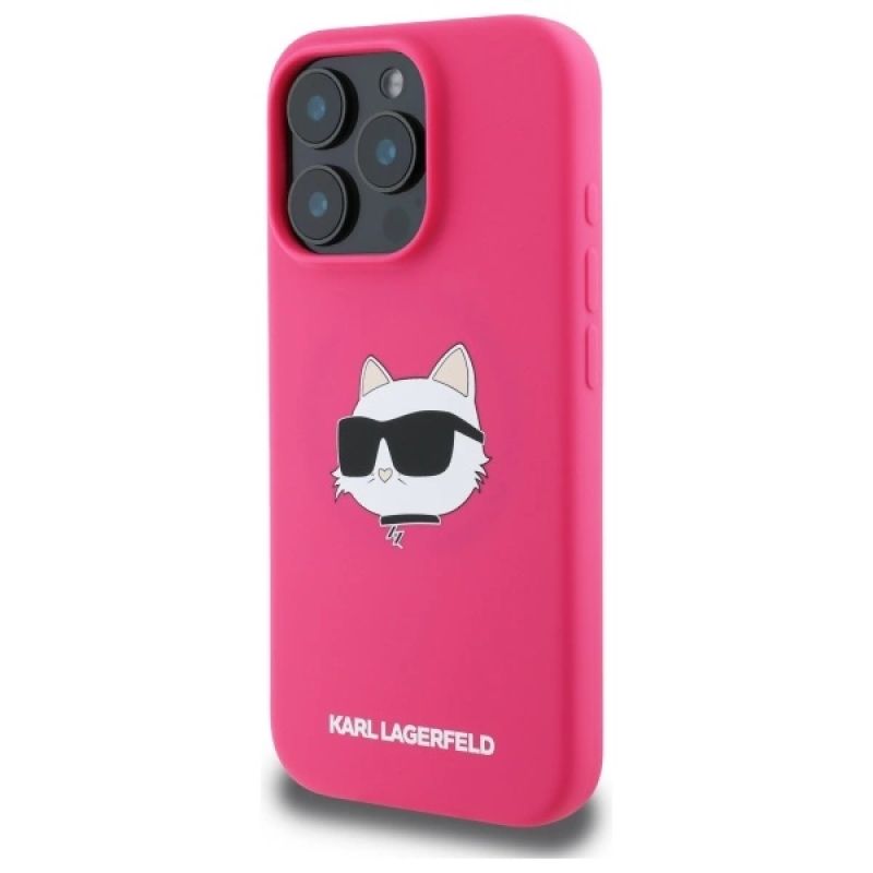 Sammlung Silikon-Choupette-Kopf MagSafe Typ Hartschalenkoffer Material Silikon/TPU/PC Farbe Fuchsie Kompatibilität iPhone 16 Pro 6,3"| Name | Details |
