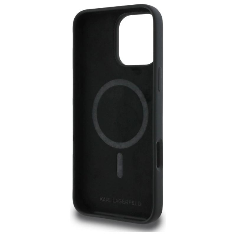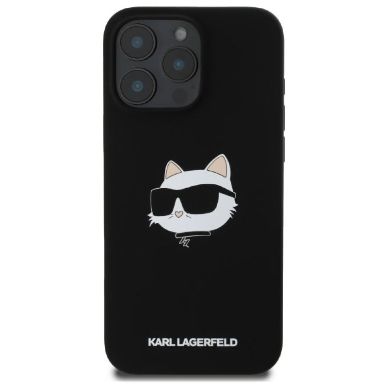 Karl Lagerfeld Silikon Choupette Kopf Print MagSafe iPhone 16 Pro Hülle - Schwarz