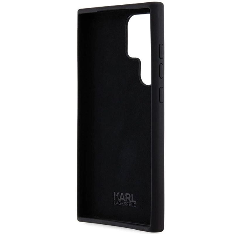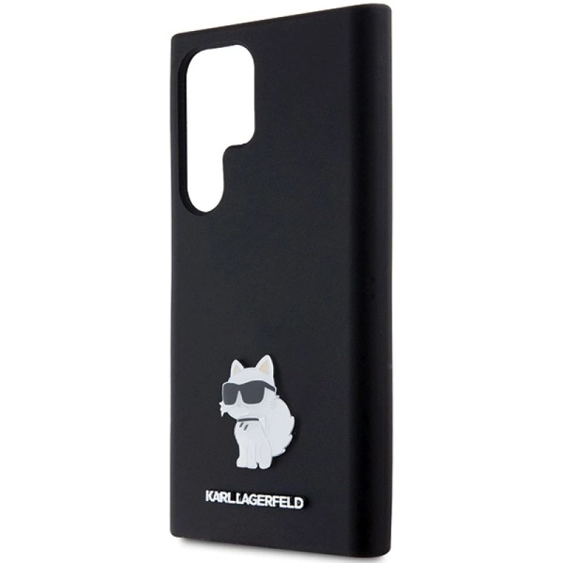 Karl Lagerfeld Silikon Choupette Metal Pin Hülle für Samsung Galaxy S23 Ultra – Schwarz