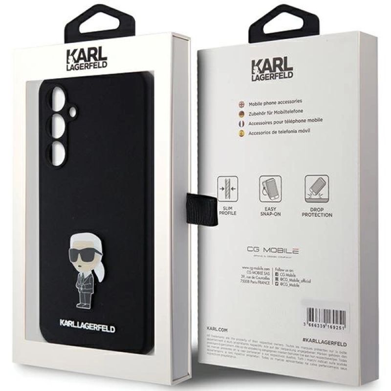 Karl Lagerfeld Silikon Ikonik Metal Pin Hülle für Samsung Galaxy S23 FE – Schwarz