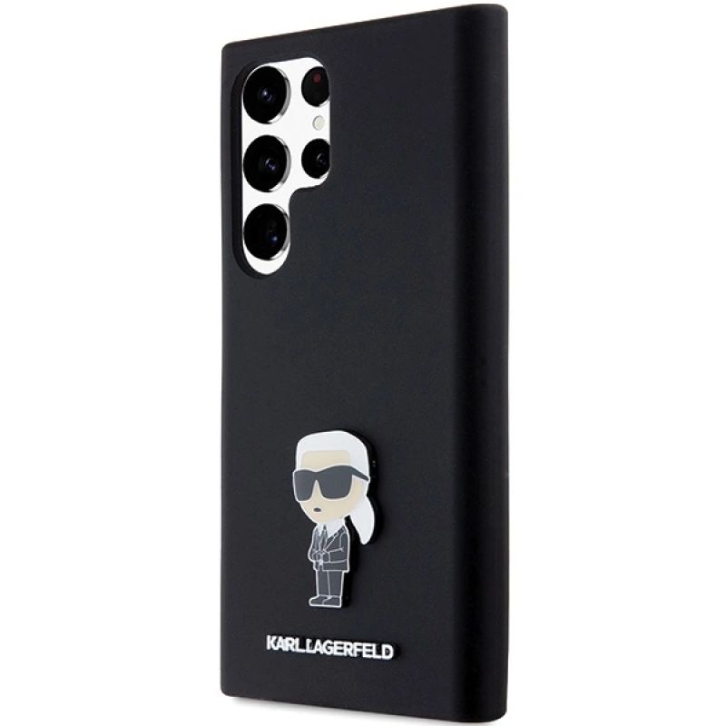 Karl Lagerfeld Silikon Ikonik Metal Pin Hülle für Samsung Galaxy S23 Ultra – Schwarz