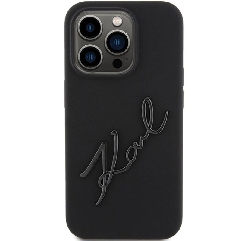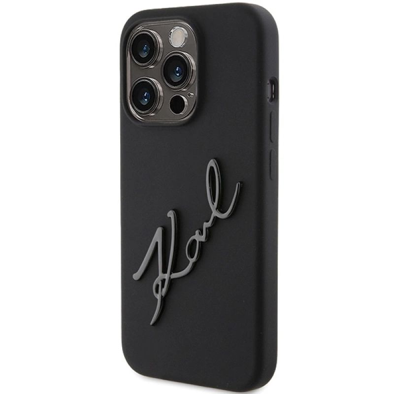 Karl Lagerfeld Silikon Karl Script Hülle für iPhone 15 Pro – Schwarz