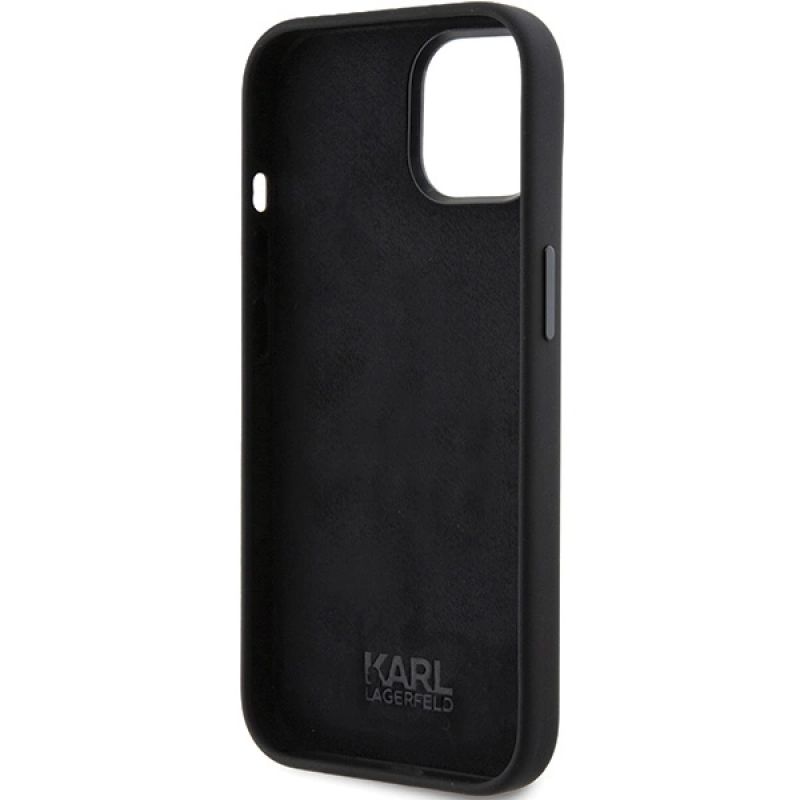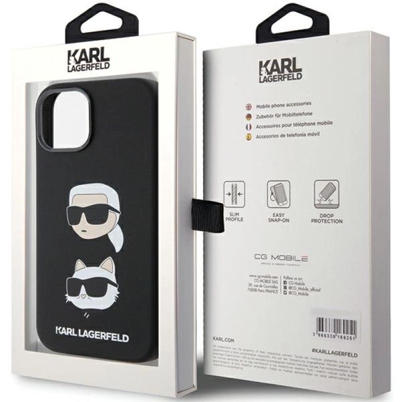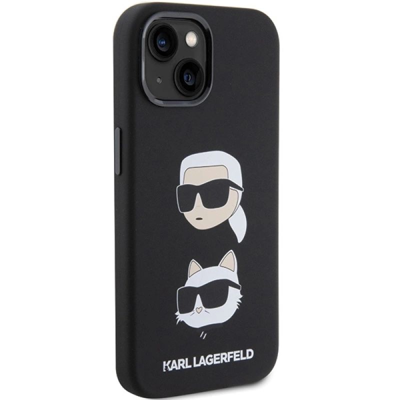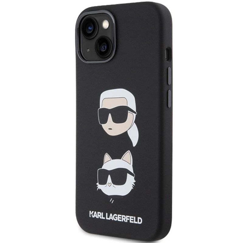 Karl Lagerfeld Silikon Karl&Choupette Head Hülle für iPhone 15 Plus / 14 Plus – Schwarz