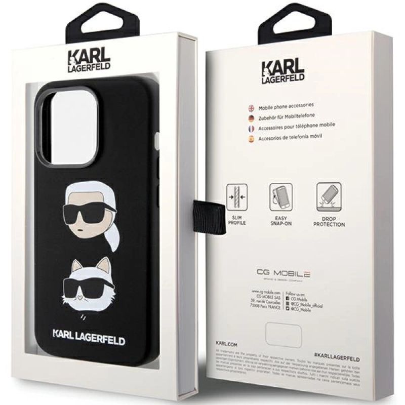Karl Lagerfeld Silikon Karl&Choupette Head Hülle für iPhone 15 Pro Max – Schwarz