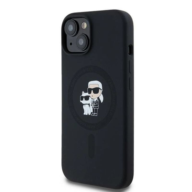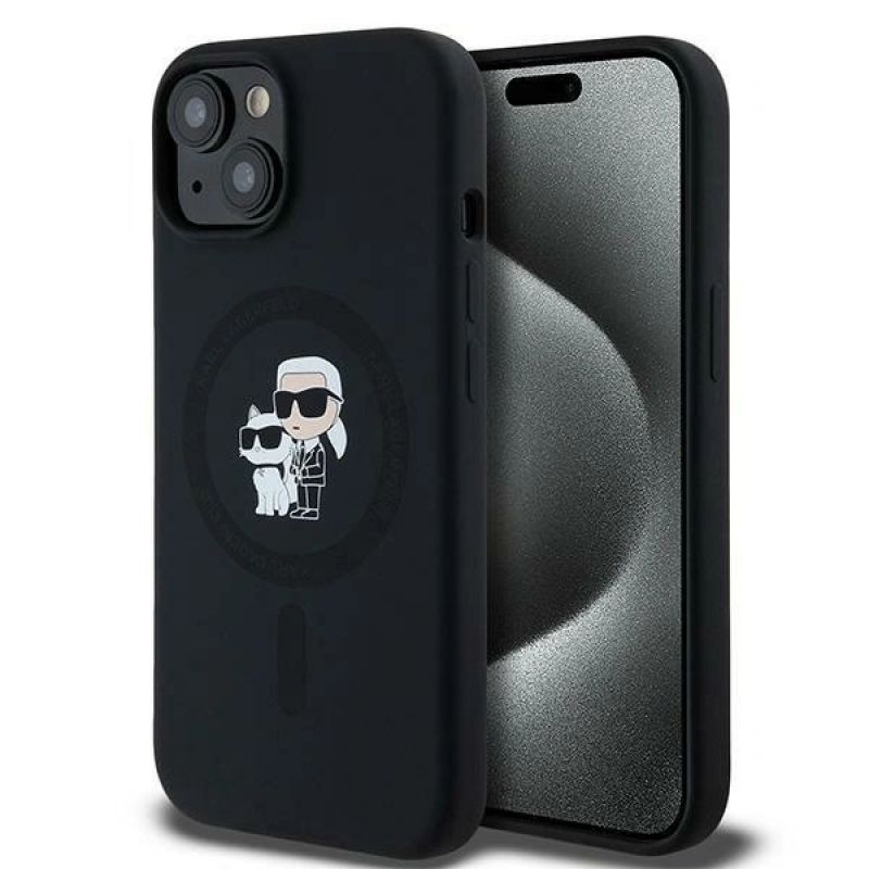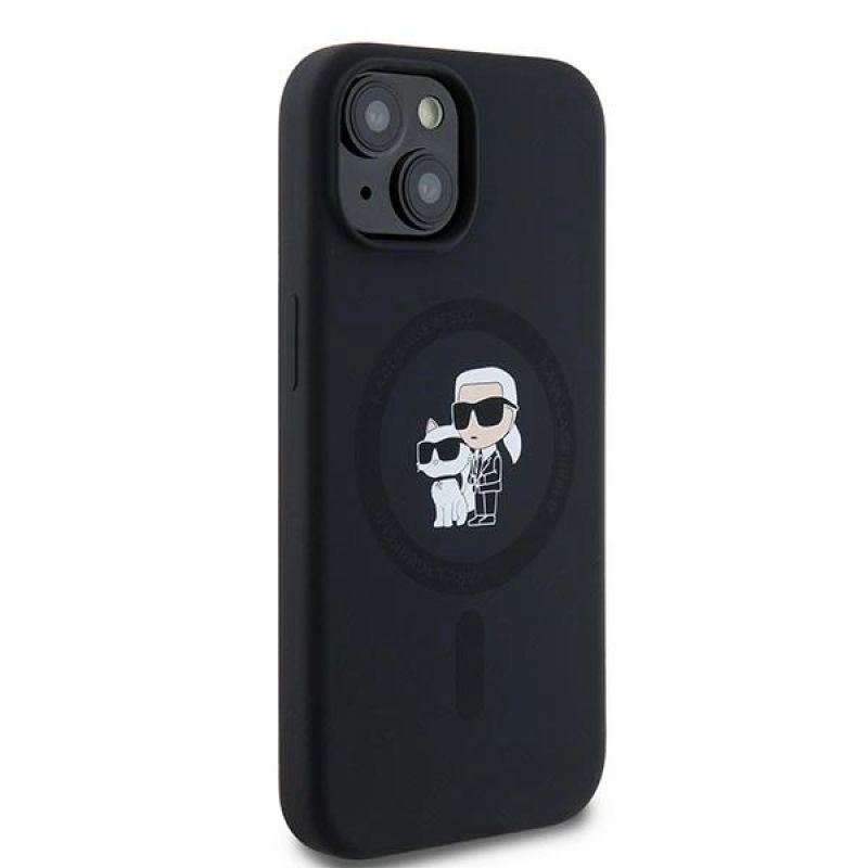 Karl Lagerfeld Silikon Karl&Choupette MagSafe Hülle für iPhone 15 Plus / 14 Plus – Schwarz
