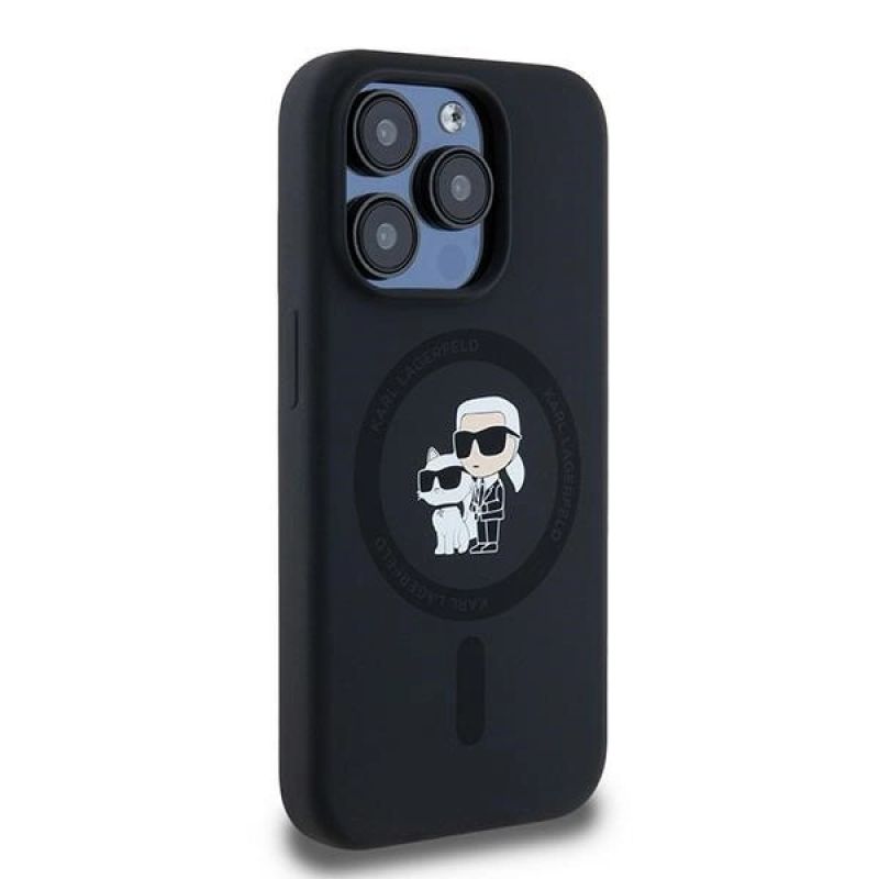 Karl Lagerfeld Silikon Karl&Choupette MagSafe Hülle für iPhone 15 Pro – Schwarz
