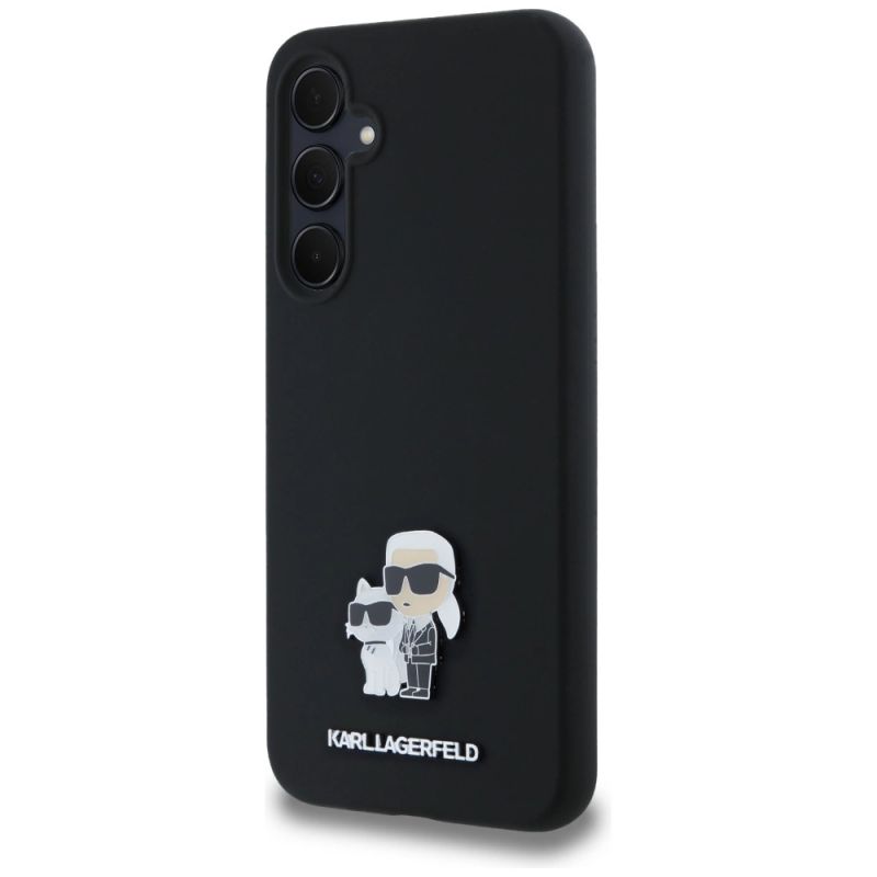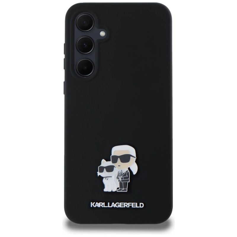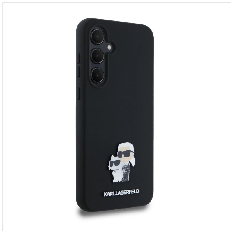 Karl Lagerfeld Silikon Karl&Choupette Metal Pin Hülle für Samsung Galaxy A35 – Schwarz