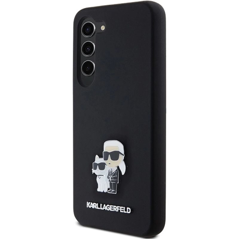 Karl Lagerfeld Silikon Karl&Choupette Metal Pin Hülle für Samsung Galaxy S24 – Schwarz