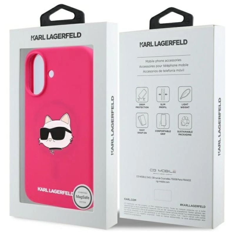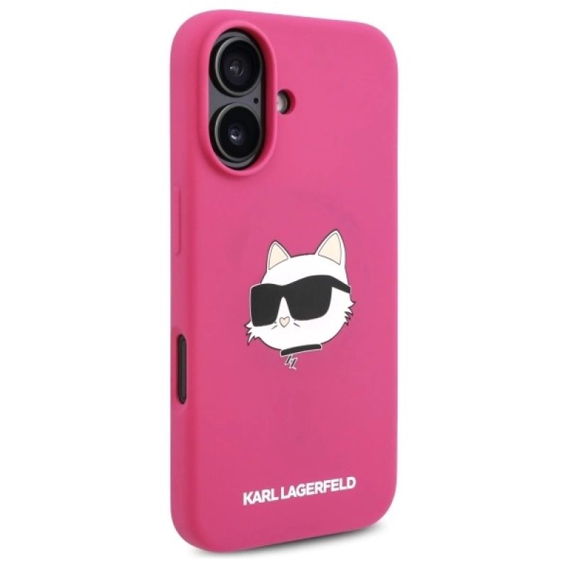 Karl Lagerfeld Silikon-MagSafe-Hülle mit Choupette-Kopf-Aufdruck für iPhone 16 – Fuchsia