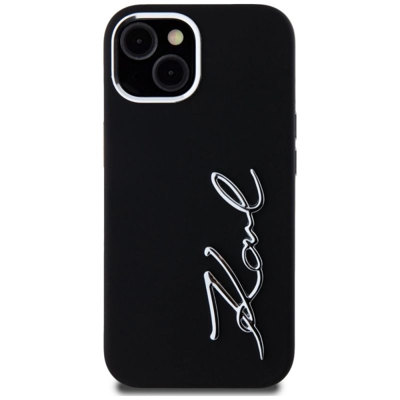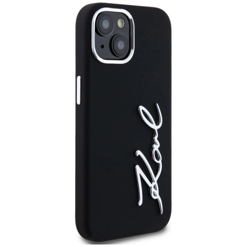 Karl Lagerfeld Silikon Metall Script Logo iPhone 15 Hülle - Schwarz