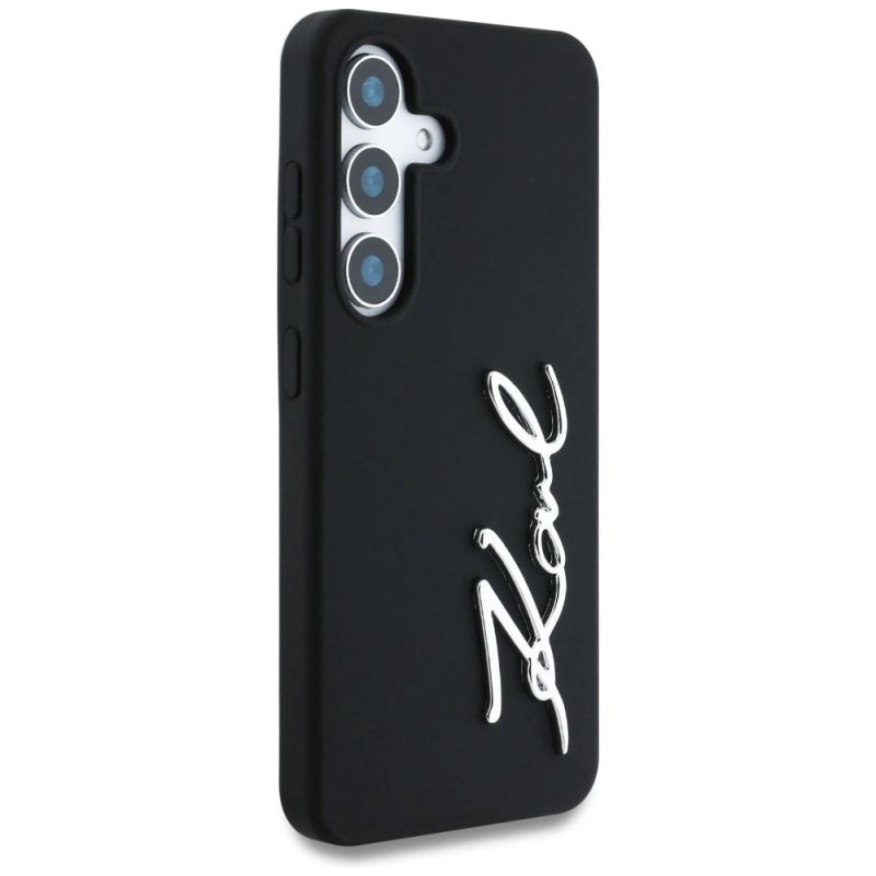 Karl Lagerfeld Silikon Metall Signature Logo Samsung Galaxy S25 Hülle schwarz