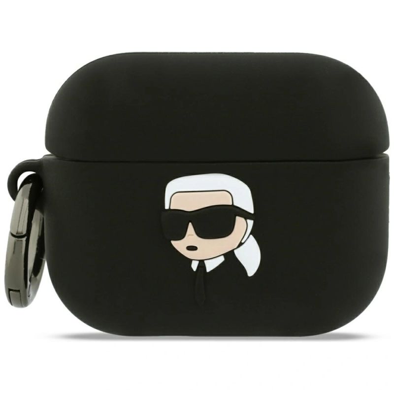 Karl Lagerfeld Silikonhülle mit Karl-Lagerfeld-Kopf (3D) für AirPods Pro 3 – Schwarz