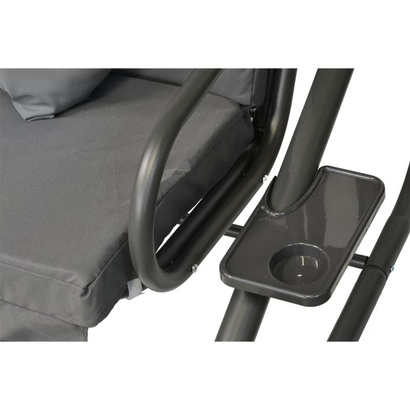 Die Schaukel verfügt über viele Funktionen und einige nützliche Extras, wie zum Beispiel Getränkehalter und die Möglichkeit, die Matratze auf eine Größe von 157 x 106 cm zu verlängern, was Entspannung und Schlaf ermöglicht.