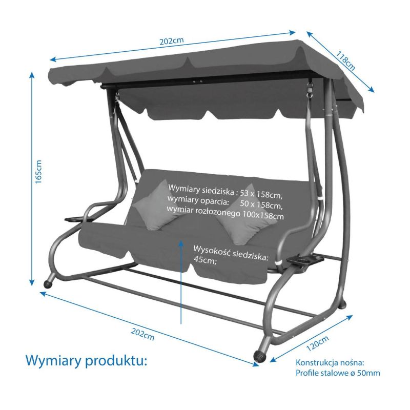KASIA Garten- und Balkonschaukel, 3-Sitzer, Grau
