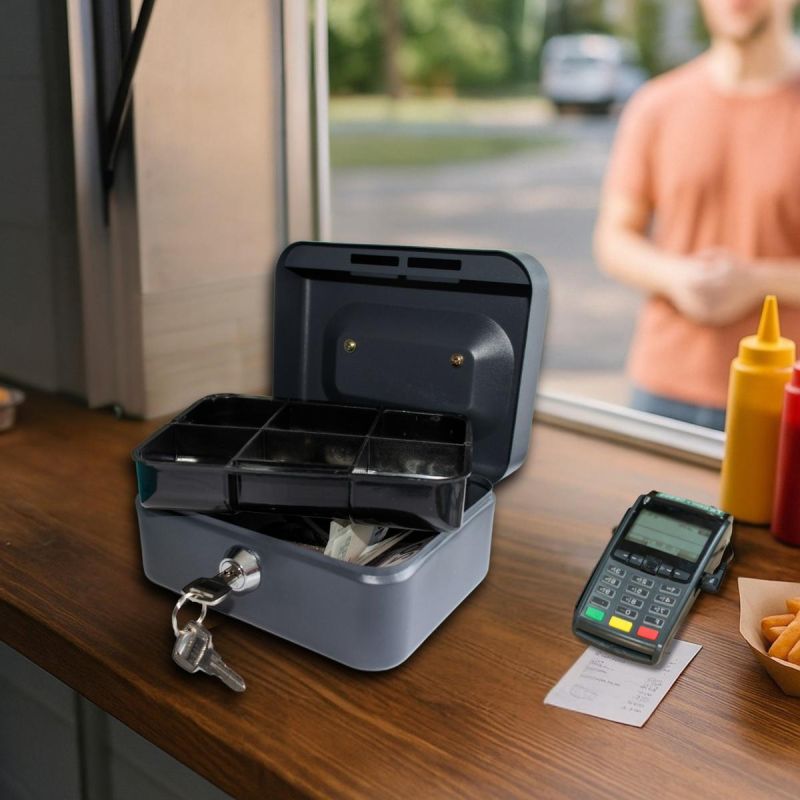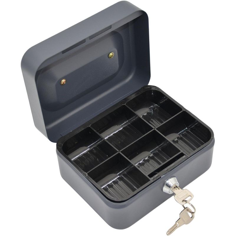 Dank des herausnehmbaren Einsatzes mit sechs Fächern ermöglicht die Geldkassette eine einfache Aufbewahrung von Banknoten und Münzen und ist somit ideal für Geschäfte, Büros und Privathaushalte geeignet. Der Einsatz besteht aus robustem ABS-Kunststoff und ist daher widerstandsfähig und leicht zu reinigen.