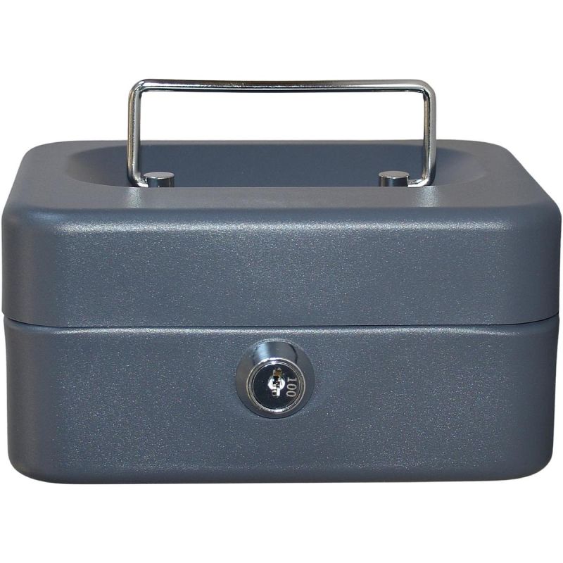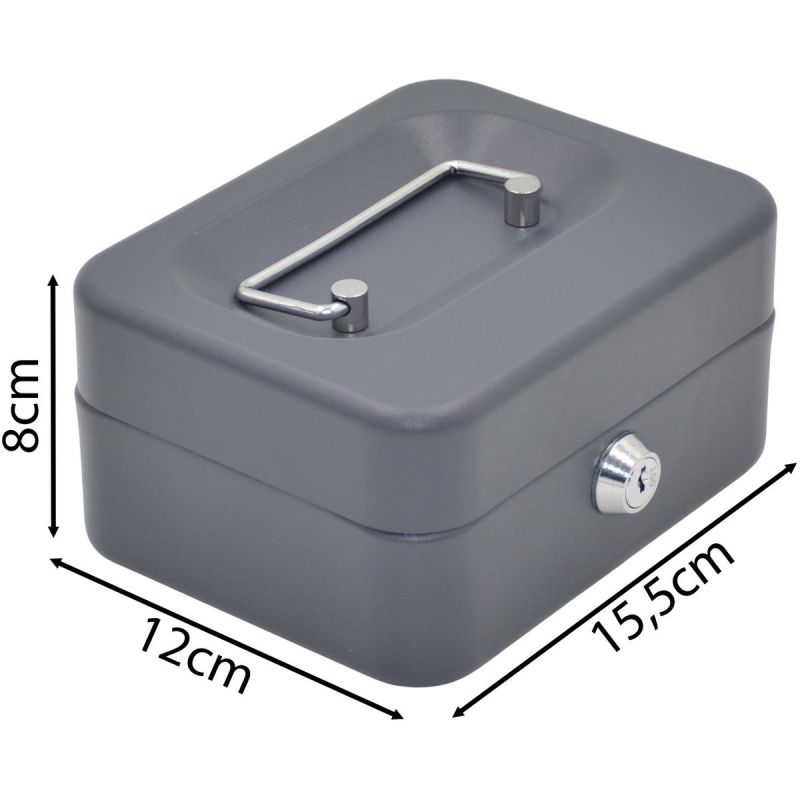 Die Box besteht aus 0,6 mm dickem Stahl und verfügt über einen verchromten Griff, was für Langlebigkeit und Widerstandsfähigkeit gegen Beschädigungen sorgt. Ideal zur sicheren Aufbewahrung von Bargeld, Dokumenten und anderen Wertsachen.