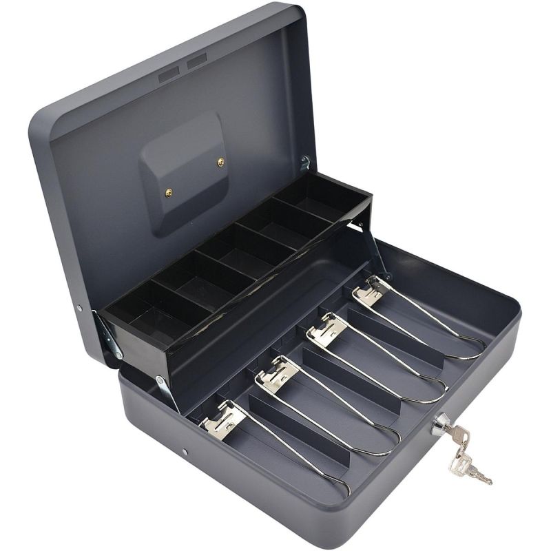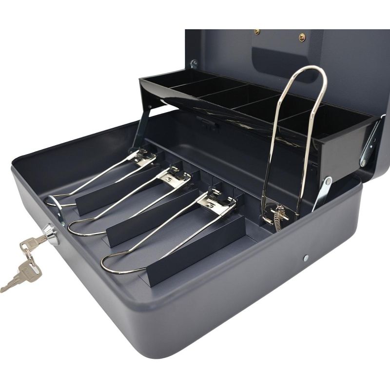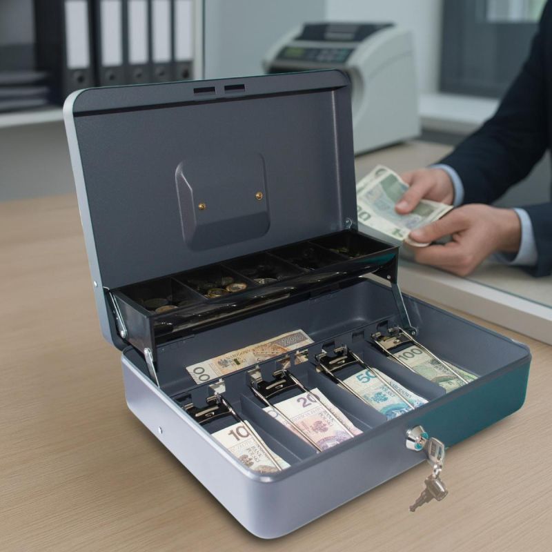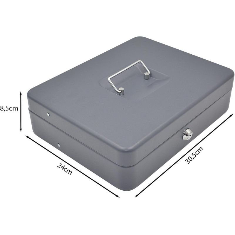 Die 30 x 24 x 8,5 cm große Geldkassette ist eine robuste, funktionale und professionelle Lösung, ideal für Büros, Geschäfte, Servicestellen und den privaten Gebrauch!
