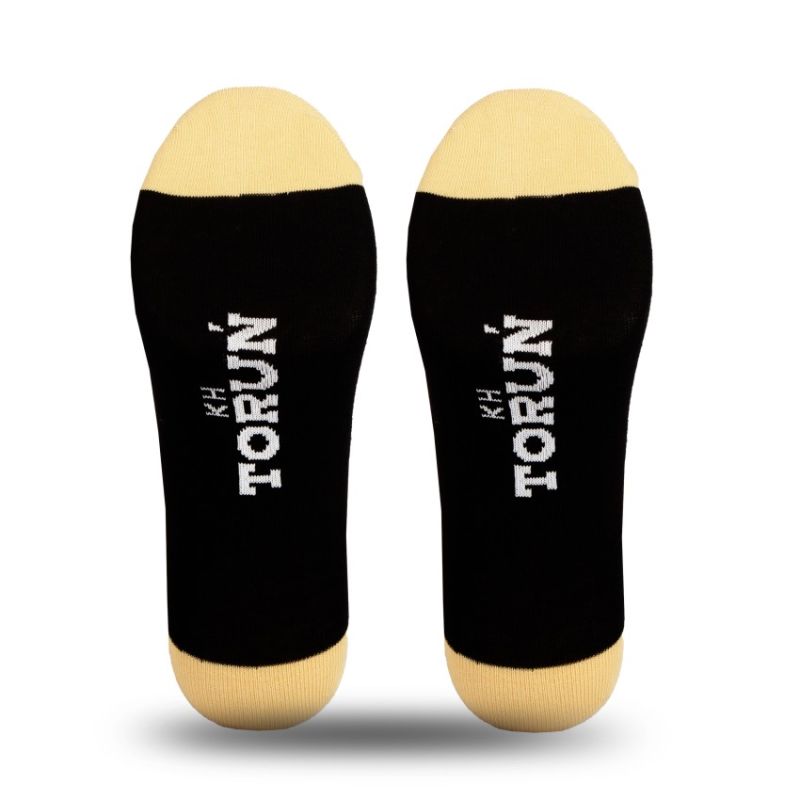 KHT Toruń Socken – Gold/Schwarz: Eine elegante Kombination aus Schwarz und Gold mit einem unverwechselbaren Vereinslogo! Die KHT Toruń Socken in Gold/Schwarz sind ein stilvolles Accessoire für Fans, die Wert auf Vereinszugehörigkeit und einen eleganten, dezenten Look legen. Der schwarze Hintergrund, akzentuiert durch goldene Details und das markante KHT Toruń-Logo, verleiht diesen Socken einen modernen und prestigeträchtigen Charakter. Hochwertiges Material sorgt für angenehmen Tragekomfort im Alltag, und der körpernahe Schnitt garantiert eine perfekte Passform. Hauptmerkmale: Vereinslogo: Ein unverwechselbares KHT Toruń-Wappen unterstreicht Ihre Fanbindung. Farbkombination Gold/Schwarz: Die elegante Kombination aus Schwarz und Gold verleiht diesen Socken einen einzigartigen, modernen Look. Hoher Tragekomfort: Weiches, flexibles Material sorgt für Komfort im Alltag. Vielseitiger Stil: Perfekt für den Alltag sowie für Spiele und Sportveranstaltungen. Mit den stylischen KHT Toruń Socken in Gold/Schwarz zeigen Sie Ihre Vereinstreue dezent und dennoch deutlich.