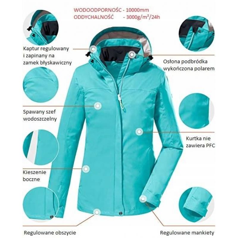 Es ist wind- und wasserdicht, hat eine abnehmbare Kapuze und Seitentaschen für Kleinigkeiten.
