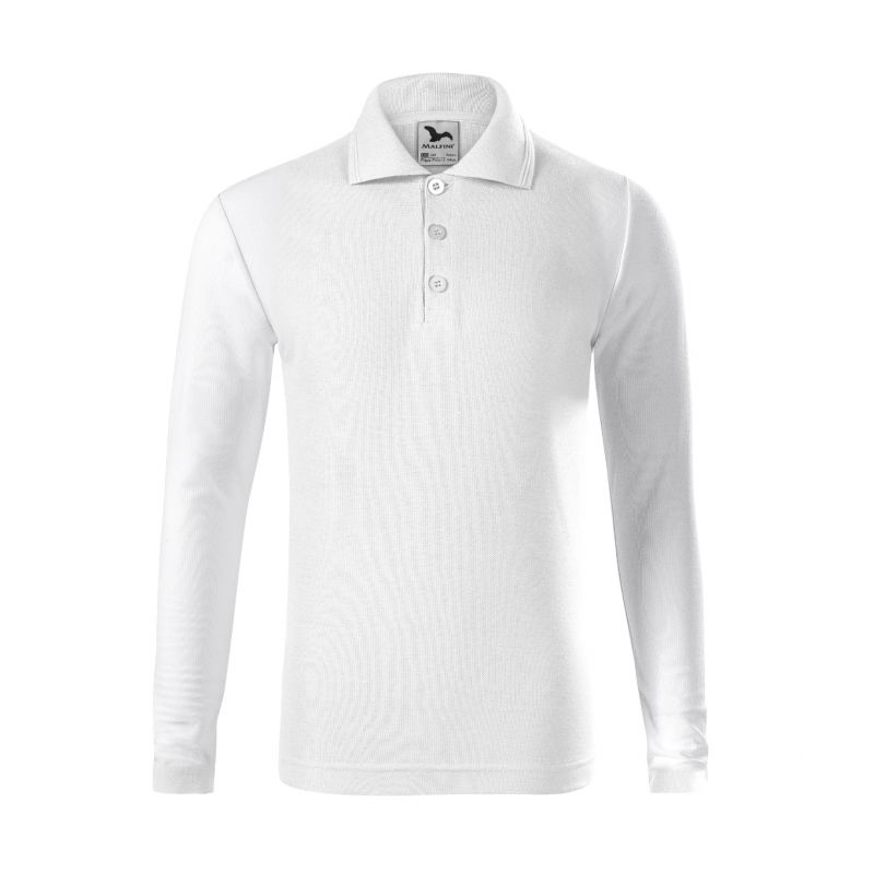 Piqué, 65 % Baumwolle, 35 % Polyester, Schnitt mit Seitennähten, Kragen mit doppelter Zierprägung aus 1:1 Rippstrick, Knopfleiste mit 3 Knöpfen in der gleichen Farbe wie der Stoff, innerer Teil des Saums mit einem Band aus dem gleichen Material wie das Hemd versehen, verstärkte Schulternähte mit Band, lange Ärmel