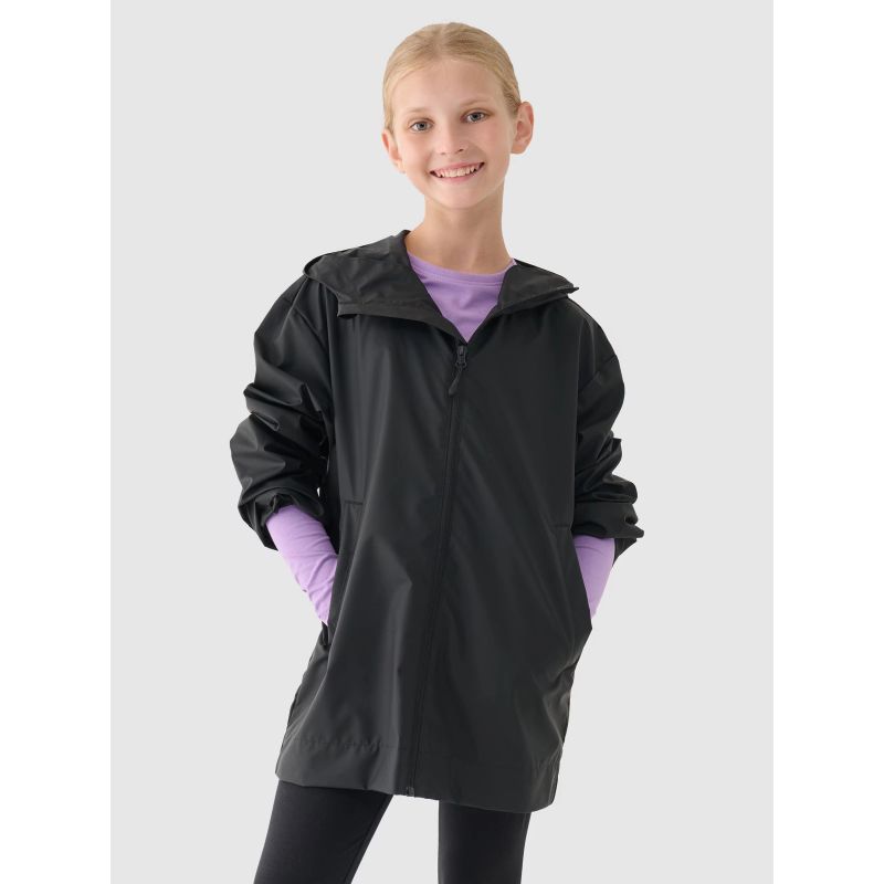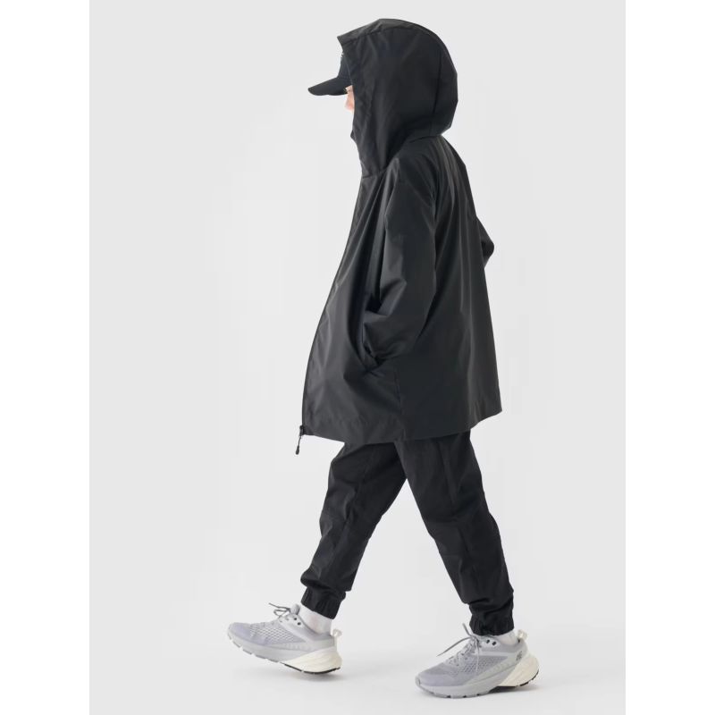 Diese Übergangsjacke für Kinder verfügt über eine integrierte, nicht verstellbare Kapuze. Ein hoher Kragen schützt den Hals zusätzlich vor Kälte und Wind. An den Seiten befinden sich zwei offene Taschen. Geschlossen wird die Alltagsjacke mit einem Einweg-Hauptreißverschluss mit innenliegender Windschutzleiste, die das Eindringen von Kälte verhindert.