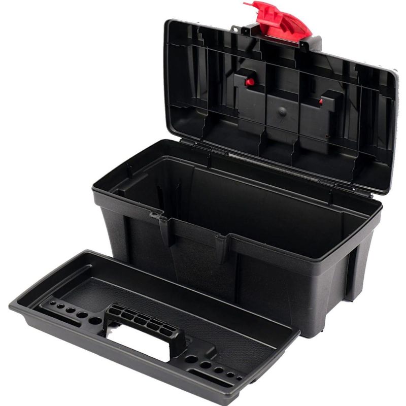 Die Box verfügt über einen speziellen Einsatz – einen Werkzeugträger mit Platz für Bits, der es Ihnen ermöglicht, die wichtigsten Werkzeuge an einem Ort aufzubewahren.