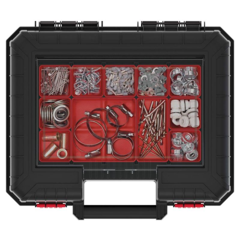 - Die transparente Organizer-Abdeckung aus robustem Polycarbonat ermöglicht einen schnellen Zugriff auf die Werkzeuge.