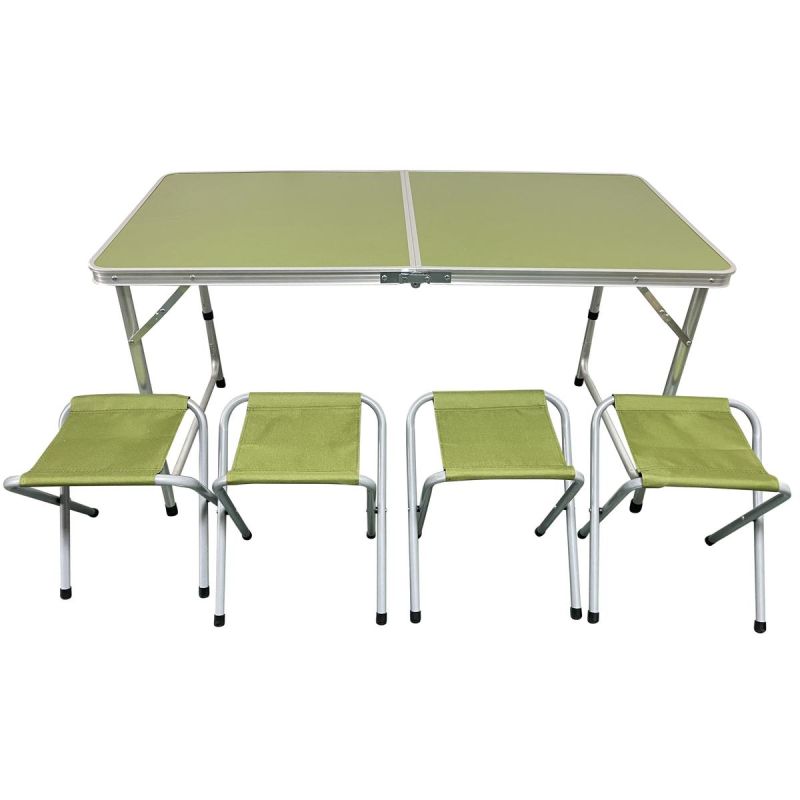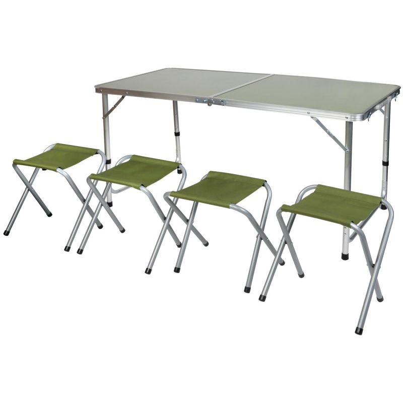 Klappbarer Campingtisch 120 x 60 x 70/62/55 cm + 4 Stühle, Grün