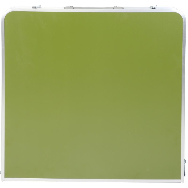 Faltbares Kofferdesign – zusammengeklappt verwandelt sich der Tisch in einen kompakten Koffer mit den Maßen 60 x 60 x 6,5 cm. Ein spezielles Schloss verhindert versehentliches Öffnen. Transport und Aufbewahrung sind schnell und bequem.