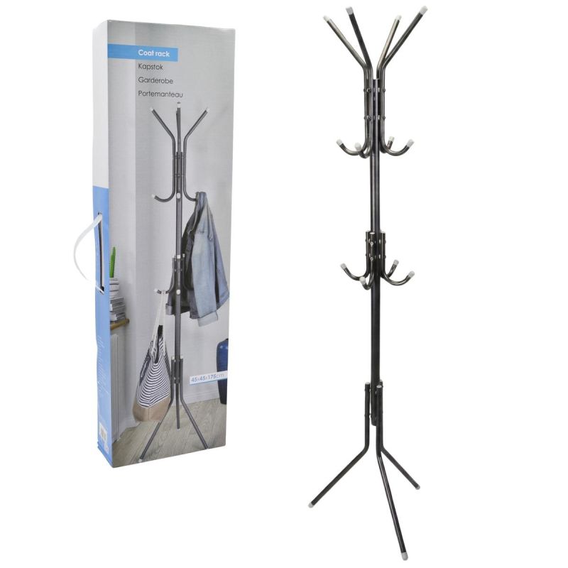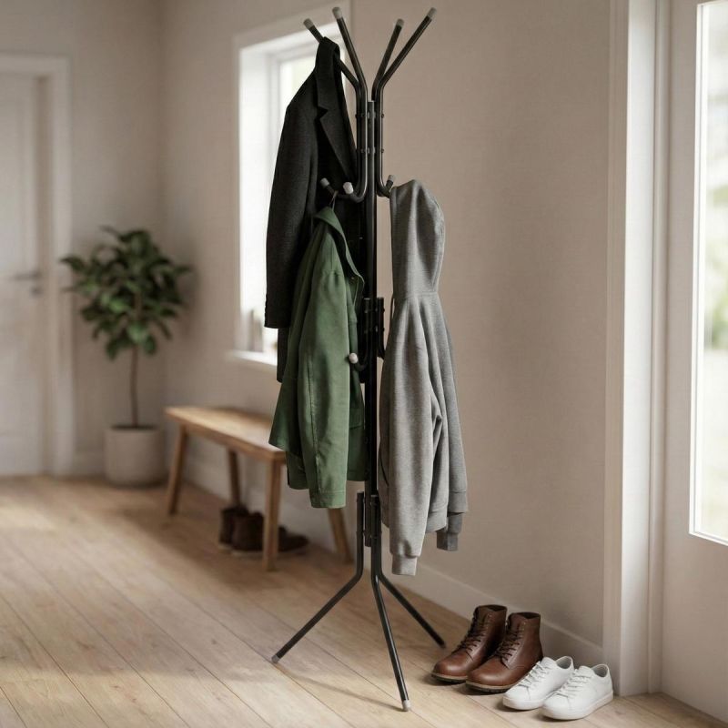 Hergestellt aus robustem, pulverbeschichtetem Stahl, bietet es Stabilität und Formbeständigkeit. Das Gestell trägt schwere Jacken, Taschen und Regenschirme sicher, ohne umzukippen.