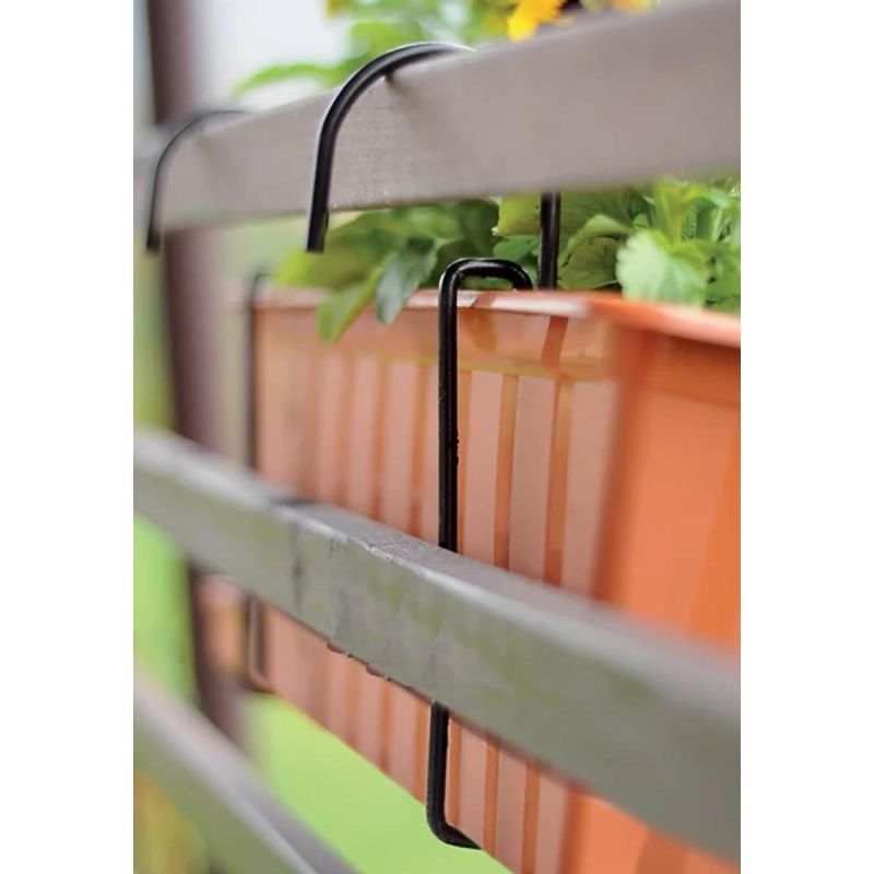 Suchen Sie nach einer praktischen Möglichkeit, einen Blumentopf an einem Geländer aufzuhängen? Der AGROHANG BLACK BALCONY BOX HOOK HANGER hilft Ihnen dabei, Ihren Blumentopf auf Ihrem Balkon aufzuhängen.