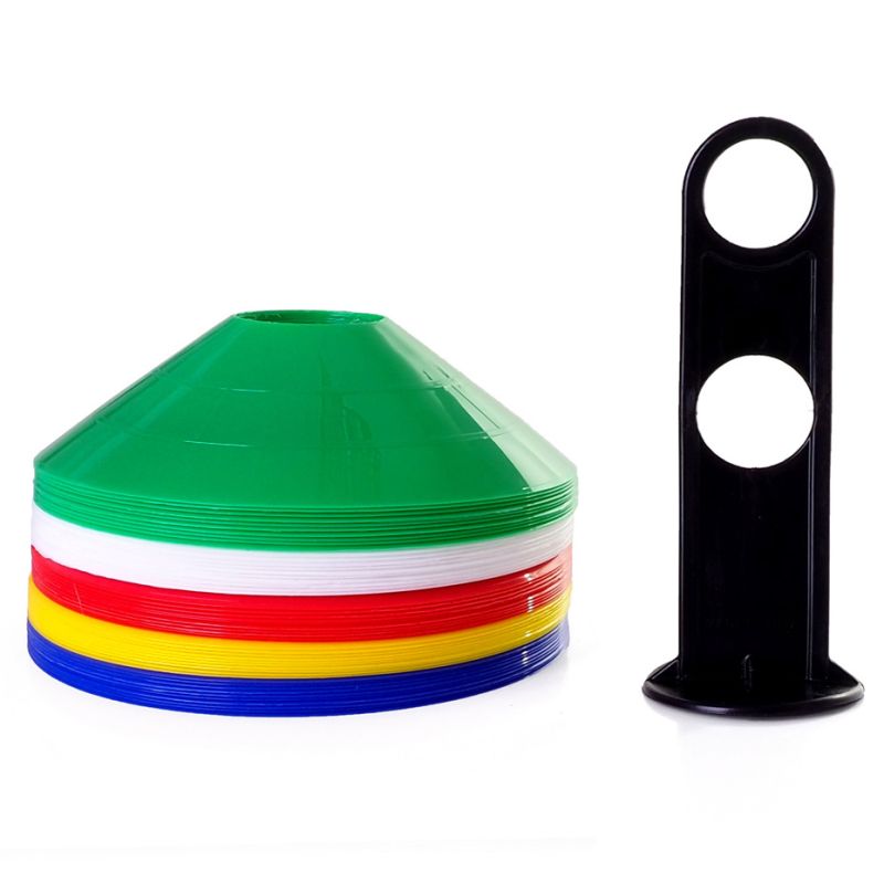 - 50 Stück Trainingsplatten aus Kunststoff, mit festem Standfuß, vorgesehen für verschiedene Arten von Training, Übungen, Spiel und Spaß.