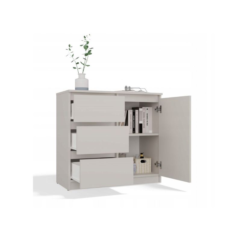 Kommode mit 1 Tür und 3 Schubladen, Kaschmir-Set