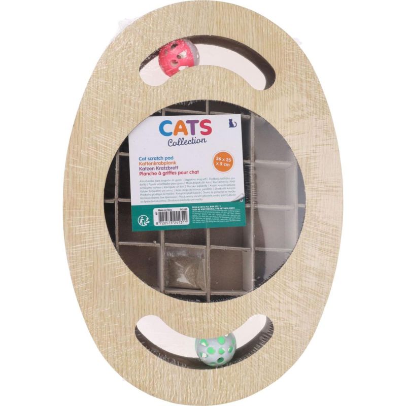 Kratzbaum für Katzen, interaktives Spielzeug aus Pappe und Holzkugeln, 2 Stück, 36 x 25 x 5 cm